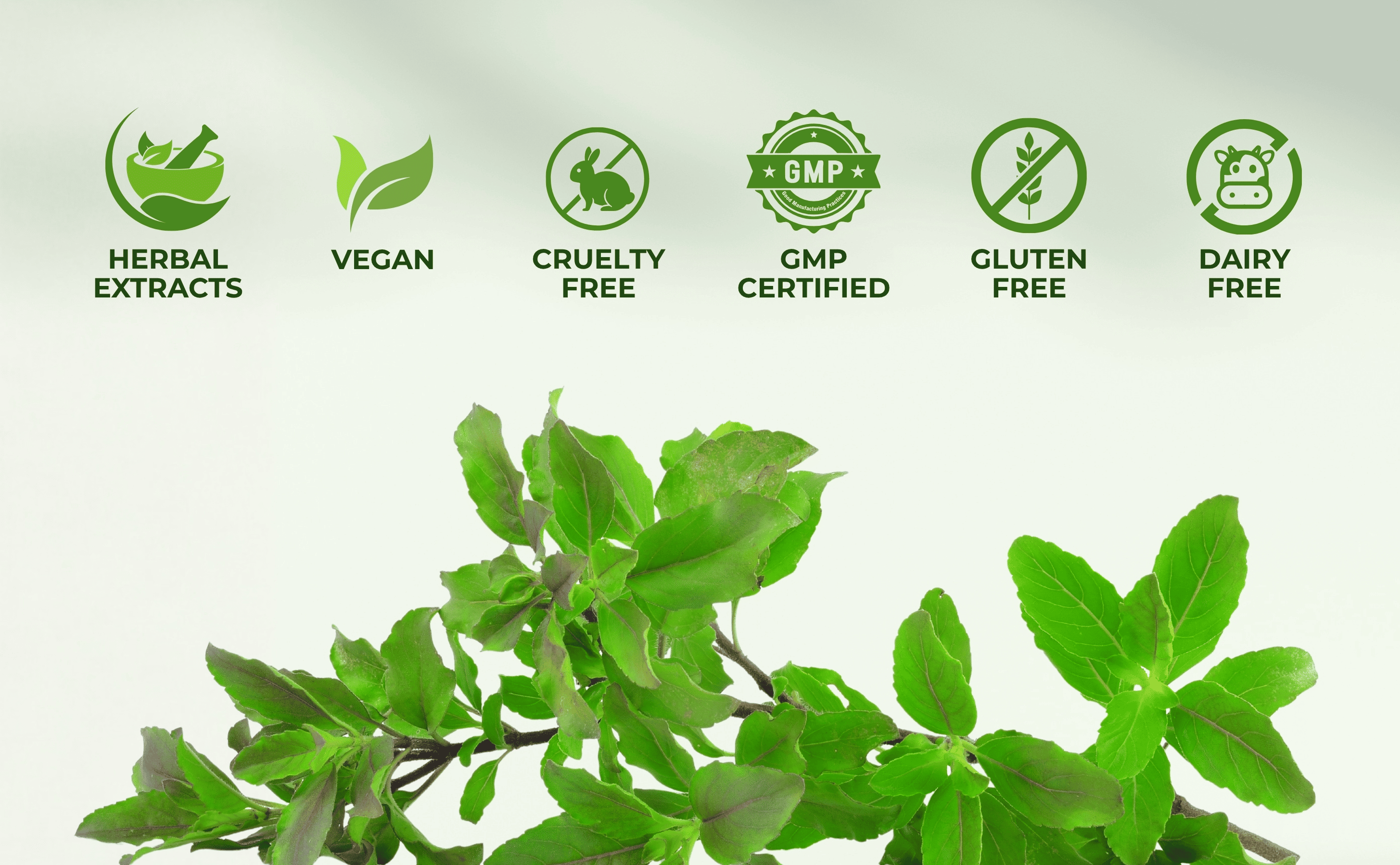Le Basilic Sacré, communément appelé Tulasi, est une herbe ayurvédique vénérée depuis plus de 3000 ans pour ses propriétés curatives. Il offre des bienfaits clairs et efficaces qui favorisent l'équilibre, la force et un bien-être durable.