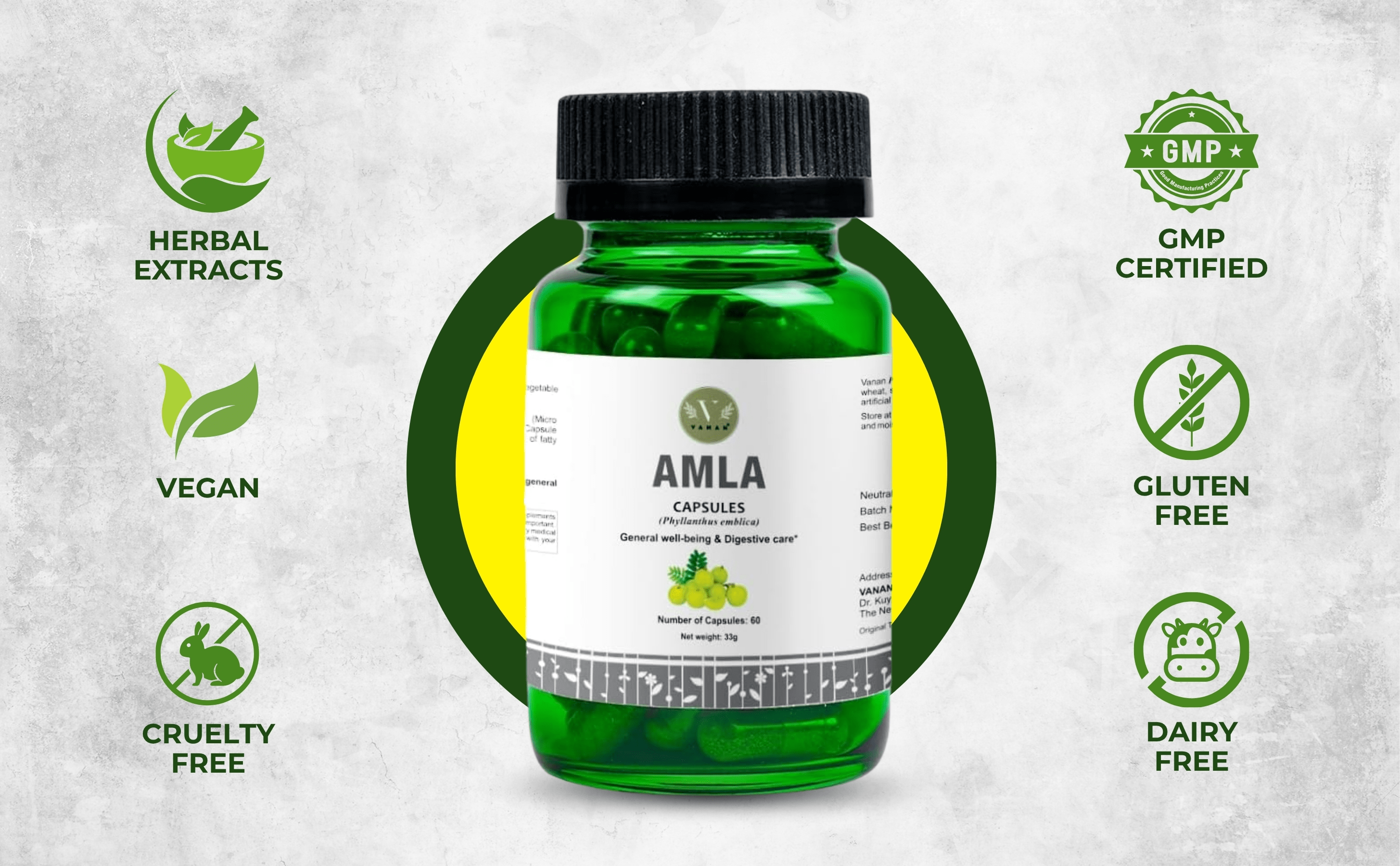 Le dichiarazioni sulla salute per le capsule Vanan Amla sono attualmente in fase di approvazione in Europa, riflettendo il loro ruolo nella salute intestinale come integratore naturale. Amla è una soluzione per chi è attento alla salute e cerca soluzioni naturali per migliorare la qualità della vita e la digestione.
