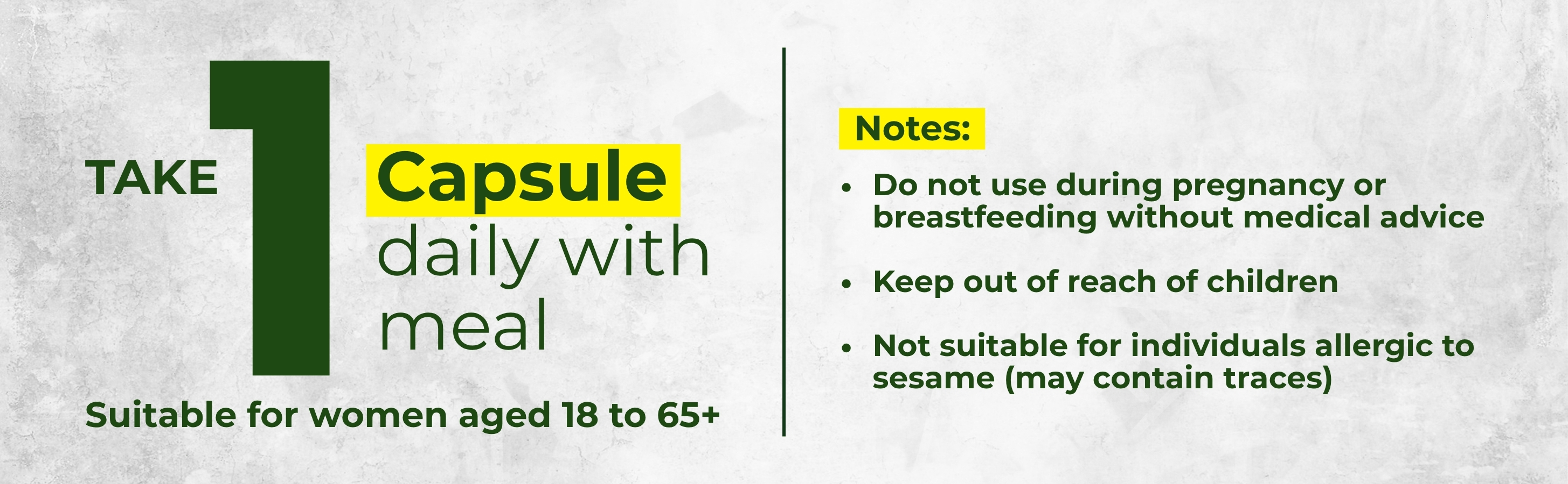 ✔ Dosage: For adults, the recommended dosage is one (1) vegetable capsule daily. It's best to take with a meal to support absorption and minimize potential digestive discomfort.